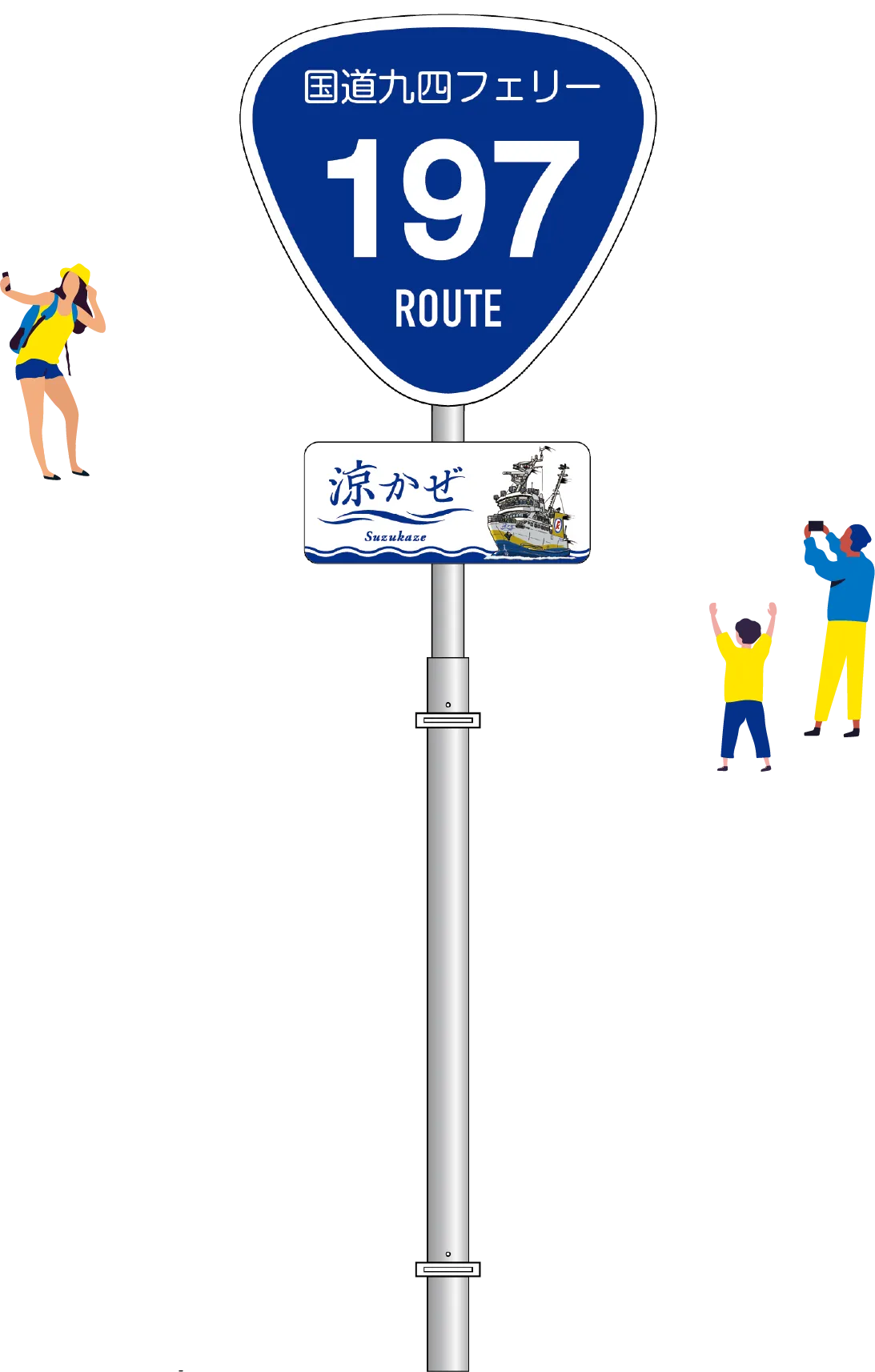 「涼かぜ」2階甲板(デッキ)に、当社航路が海上国道(国道197号線) であることを示す特別フォトスポット登場!